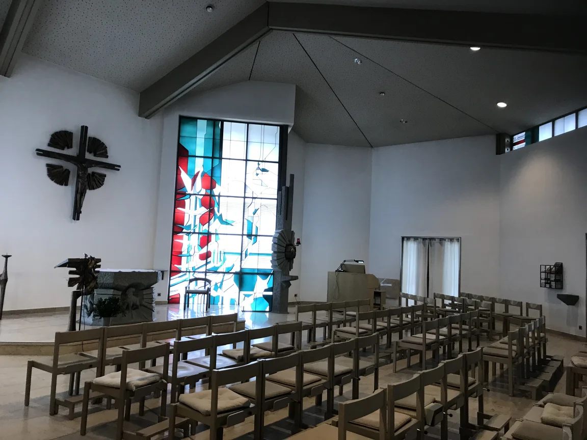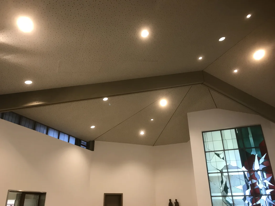 Rekonstruktion und Gestaltung der Aula des Kultur- und Bildungszentrums Sebastian Haffner in der Prenzlauer Allee nach restauratorischer Befunduntersuchung und Freigabe der UD an Holzdecke und Kalkputzwänden.