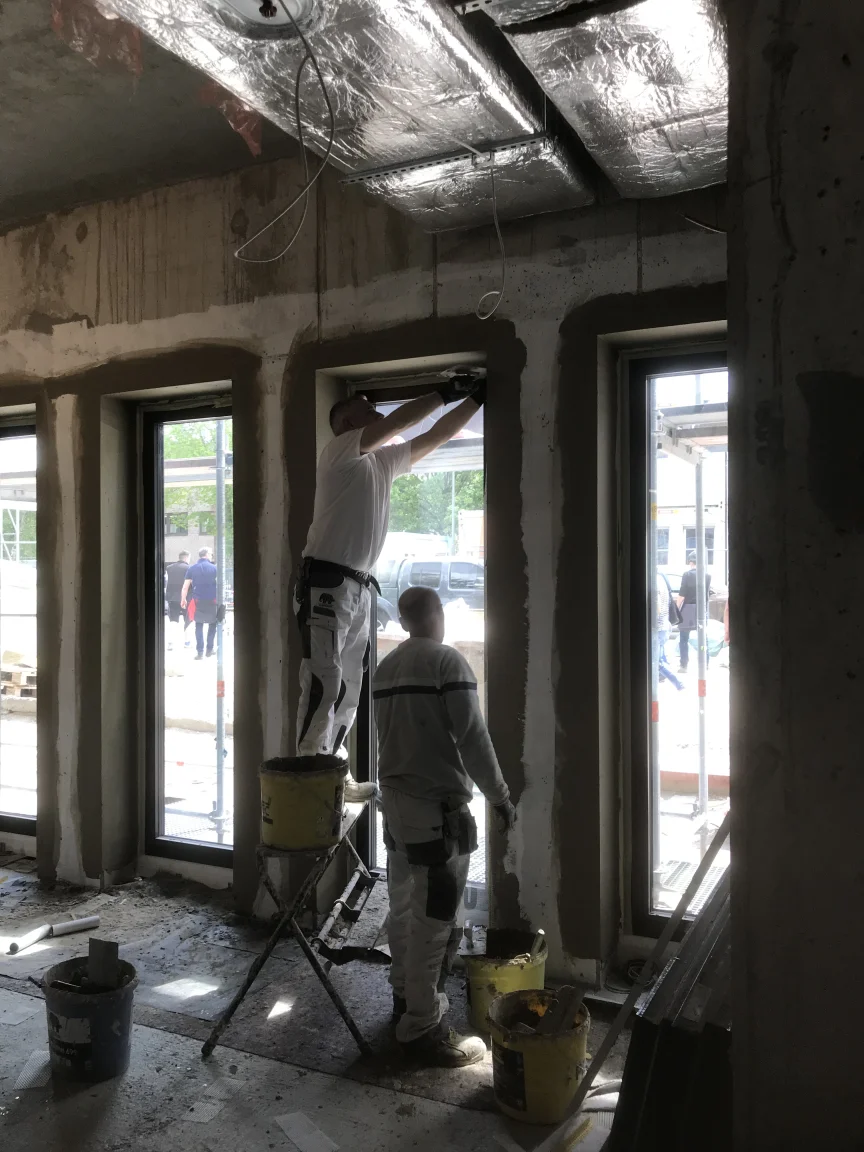 Ausführung von Maler- und Lackierarbeiten für die Fachgemeinschaft Bau Berlin Brandenburg. Circa 11.000 m² Beschichten von Decken- und Wandflächen sowie 2.500 m² Malervlies an Decken- und Wänden kleben.