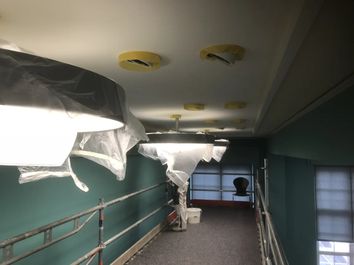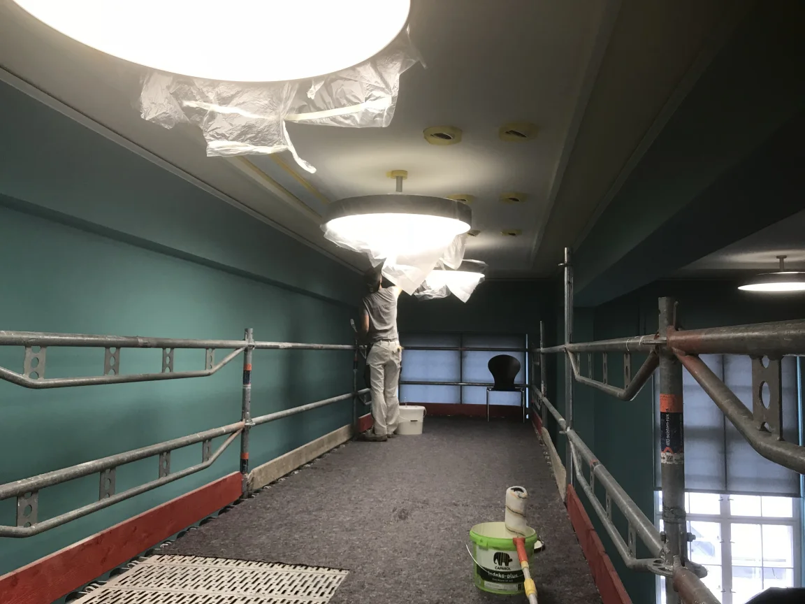 Malerarbeiten und Umgestaltung im Haus 4 des Campus Nord. Galerieräume mit Airlesstechnik. Denkmalgerechte Aufarbeitung der gesamten Holzfenster.