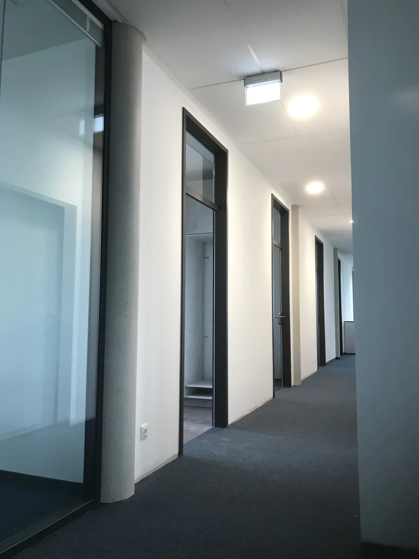 Komplette Neugestaltung aller Büroräume sowie des Treppenhauses. Ausführung aller Maler- und Lackierarbeiten samt Bodenbelagsarbeiten.